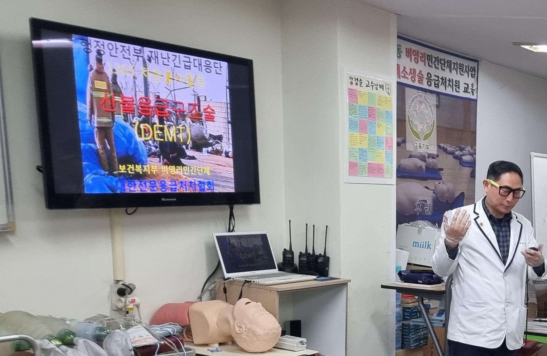 행정안전부 재난긴급대응단 대한전문응급처치협회(한국응급구조사회)봄철 산불 대응 재난응급구조술 교육 진행※ 세계최초 국민생명을 지키는 대형환경재난 대응 대국민 응급구조(DEMT)프로젝트 ※* 민간 구조구급의 창시자 응급구조의 아버지 총재 강경순 교수가 개발한 재난응급구조(DEMT)교육프로그램 DEMT(Disaster Emergence Medical TEAM)