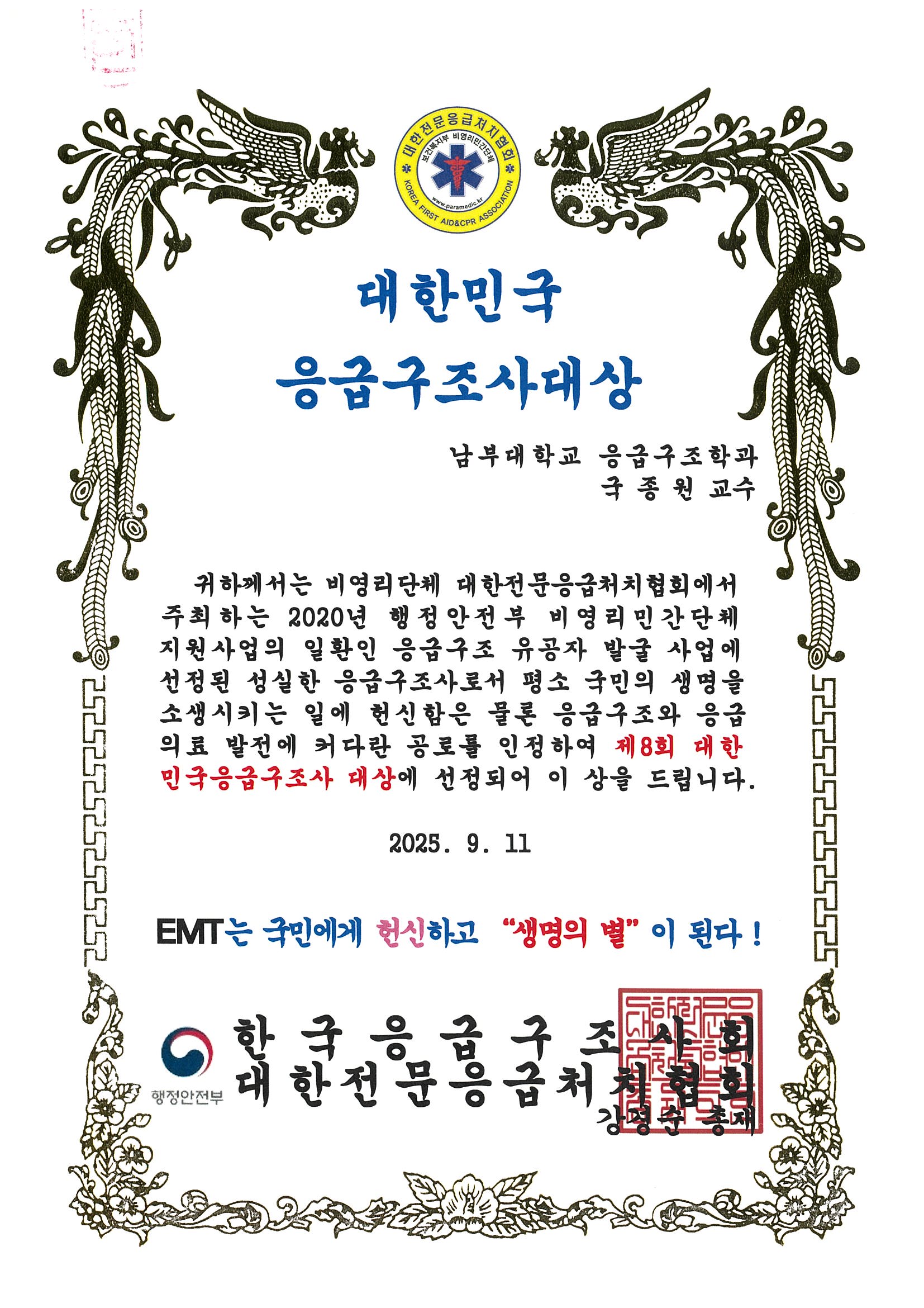 제8회대한민국응급구조사대상 시상(2020년)및 명예의 전당 등록